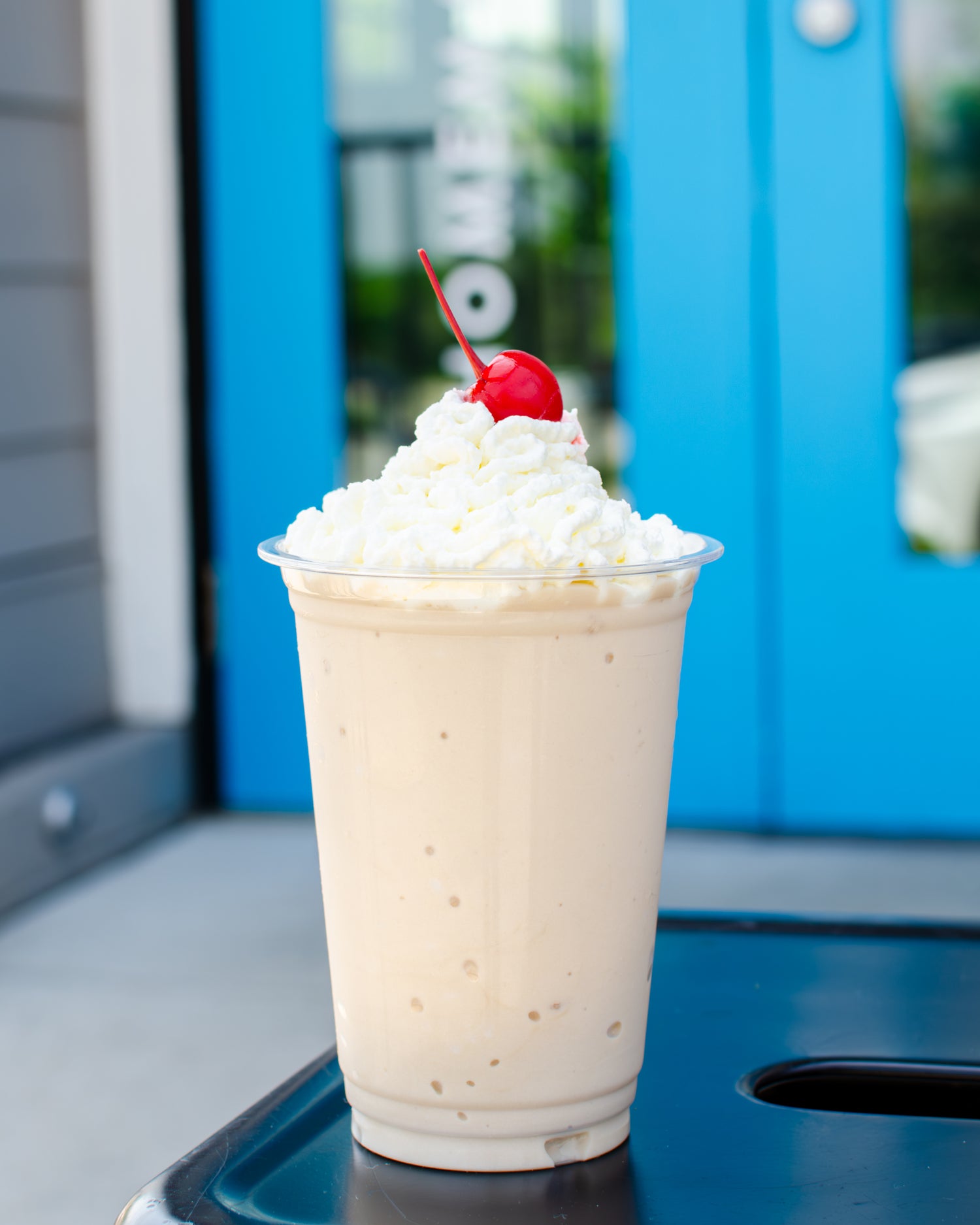 Our shake flavors: Vanilla, Dark Chocolate, Strawberry, Cookies & Cream, Mint Chip, and Peanut Butter Chocolate Chip! Seasonal flavors also included.