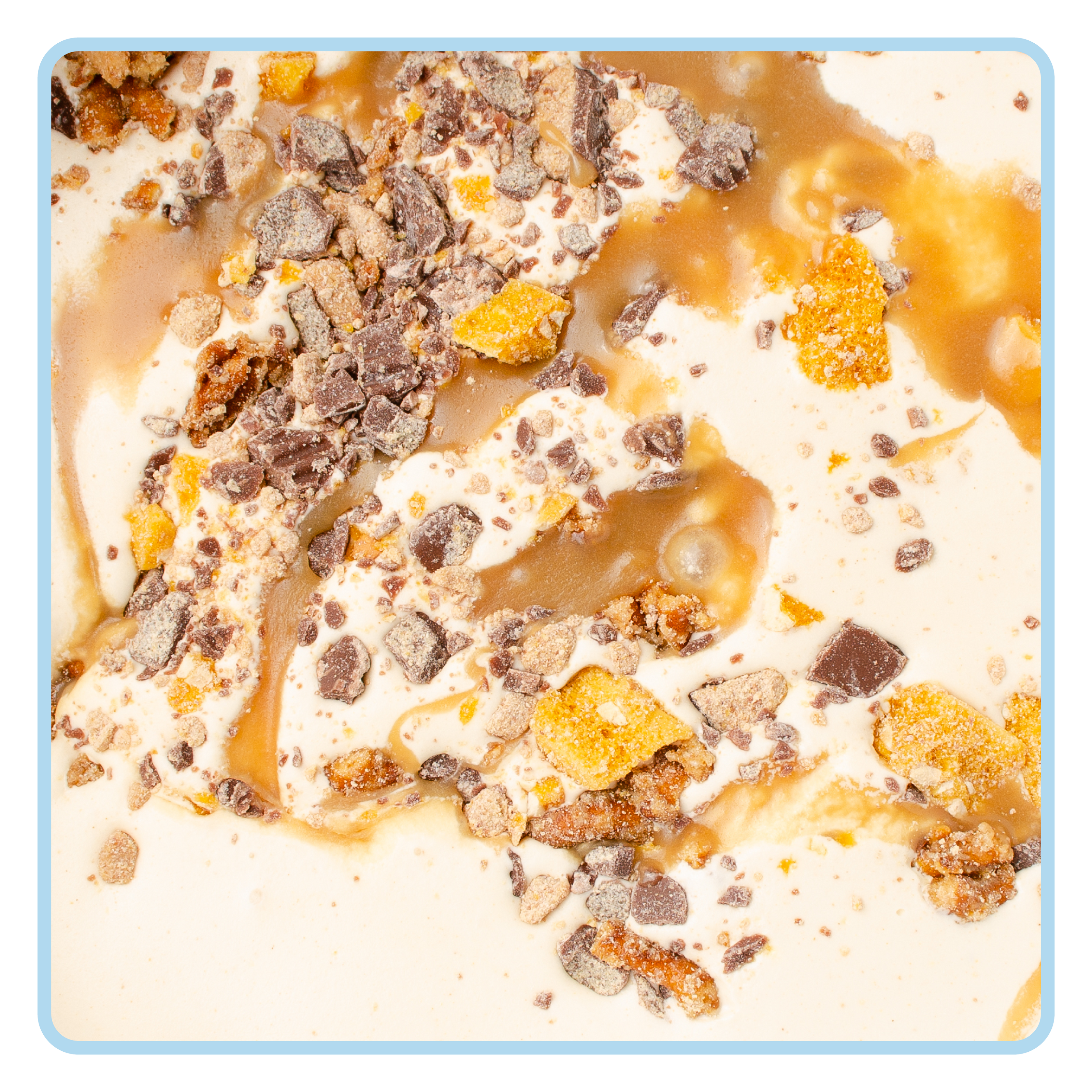 Almond Brittle with Salted GanacheSweet, buttery almond brittle & dark chocolate ganache layered throughout our creamy vanilla ice cream