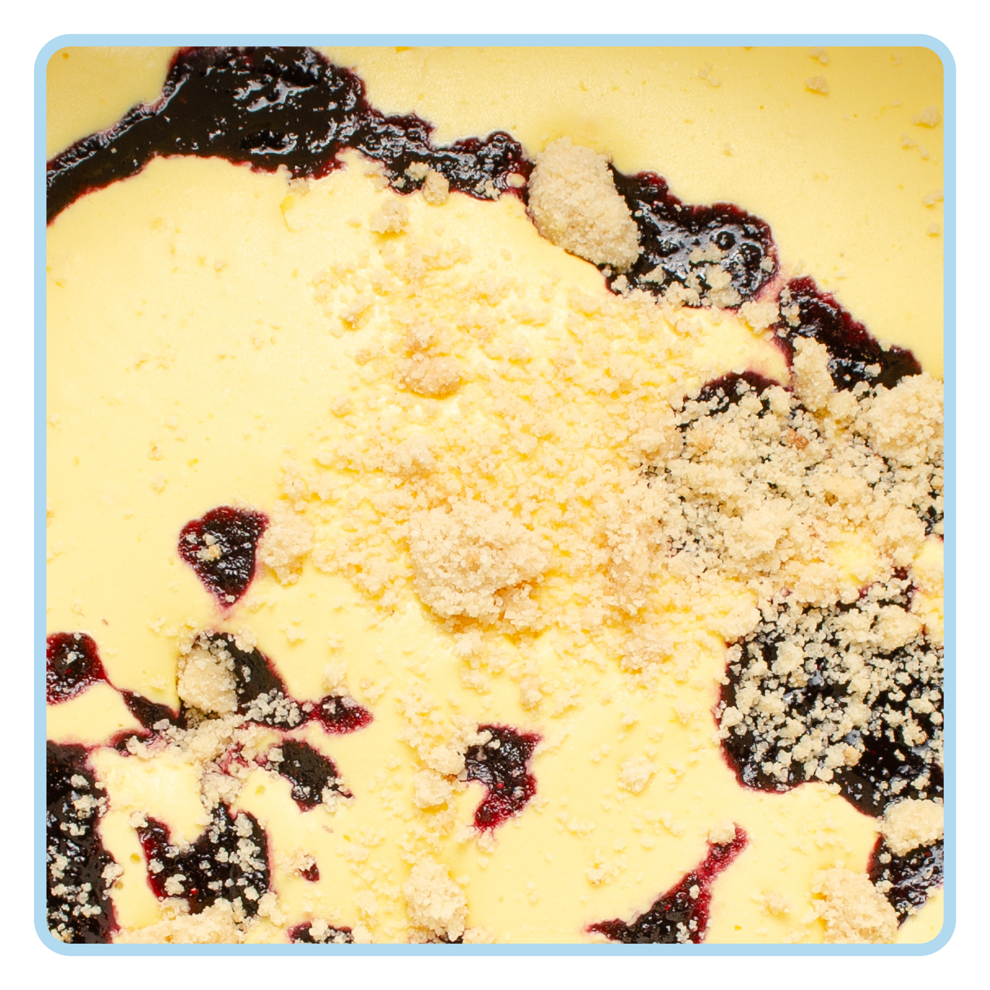 Corn This WaySweet corn ice cream with blueberry swirls and corn crumble