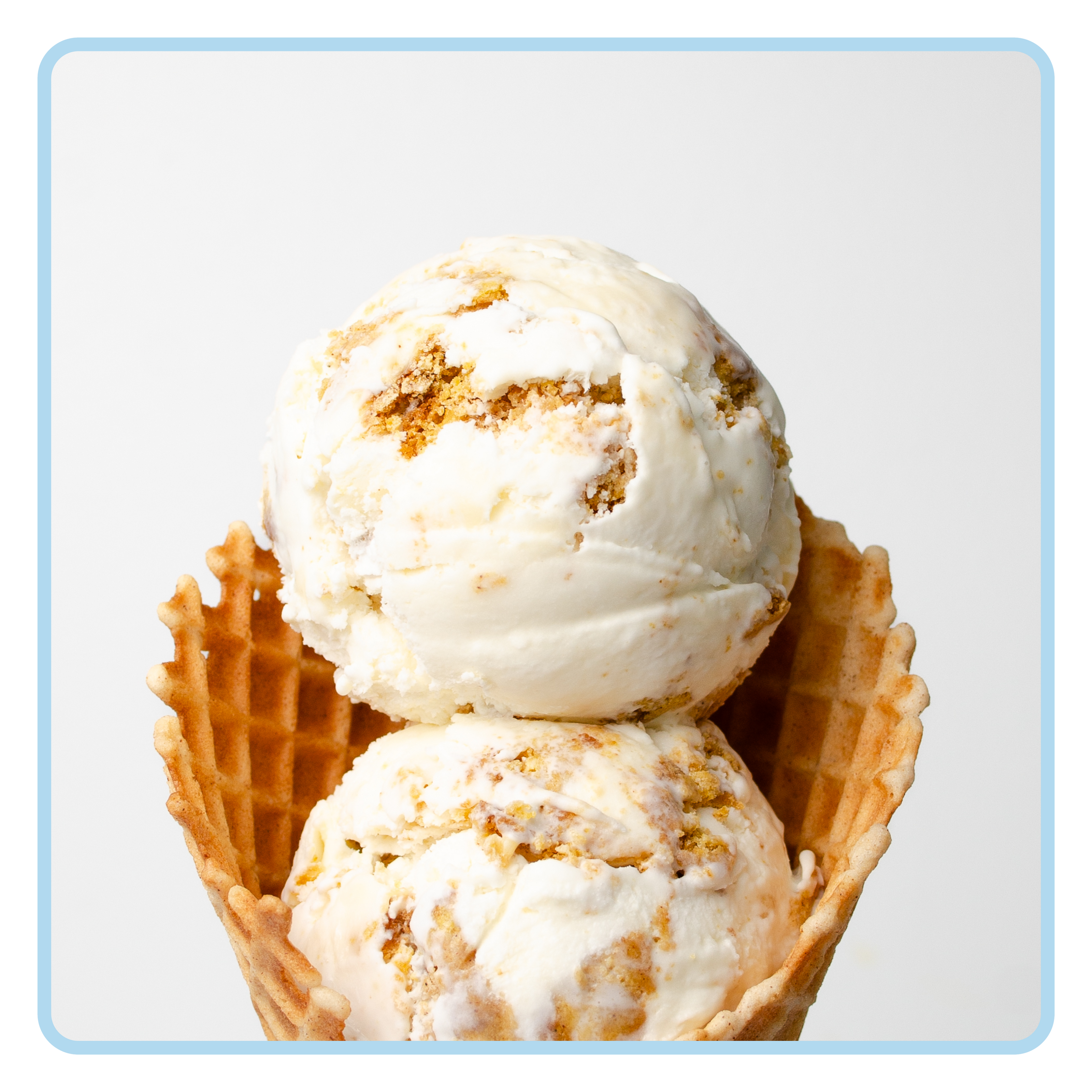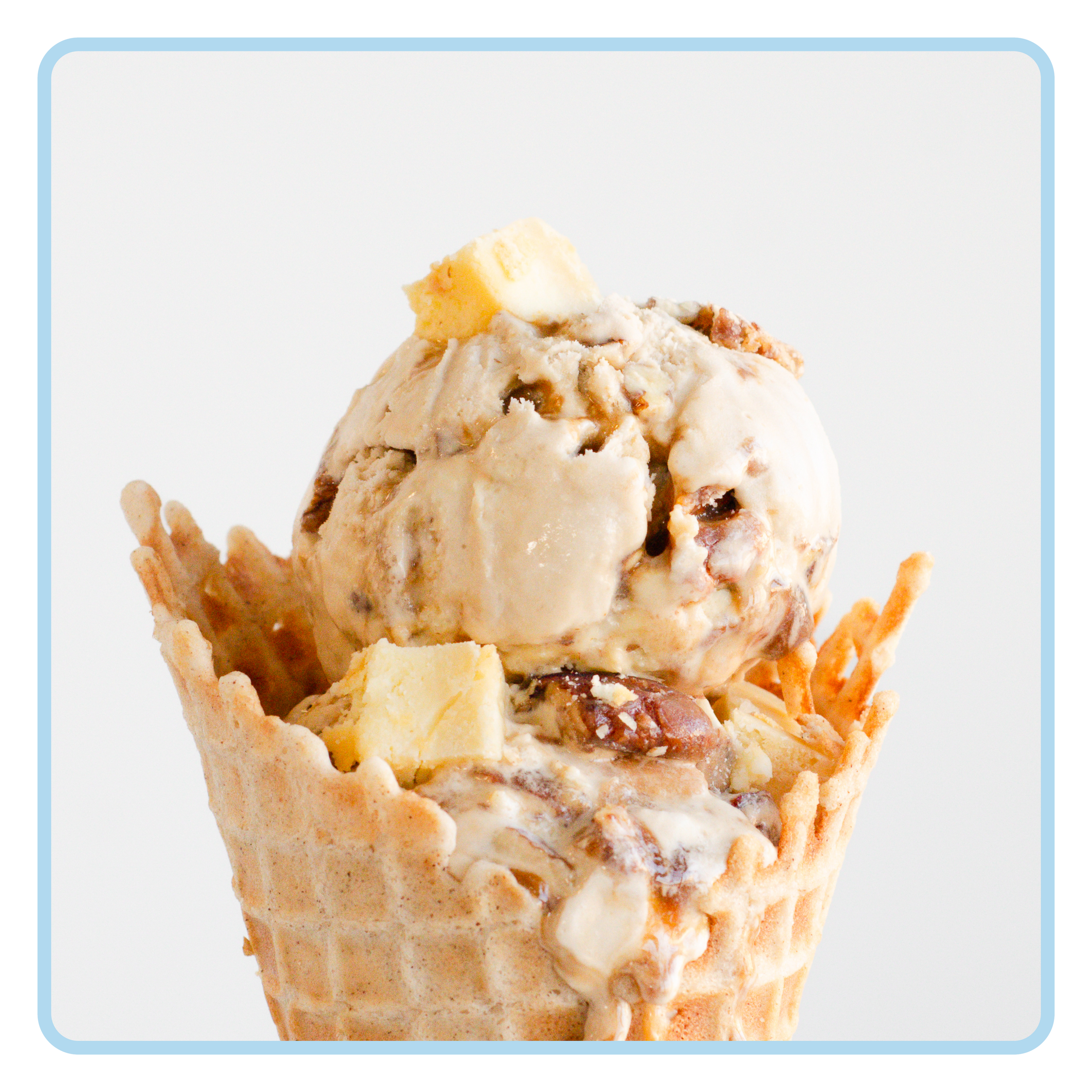Ooey Gooey GoodnessButter pecan ice cream with ooey gooey butter bars, praline pecans, and cinnamon caramel swirls