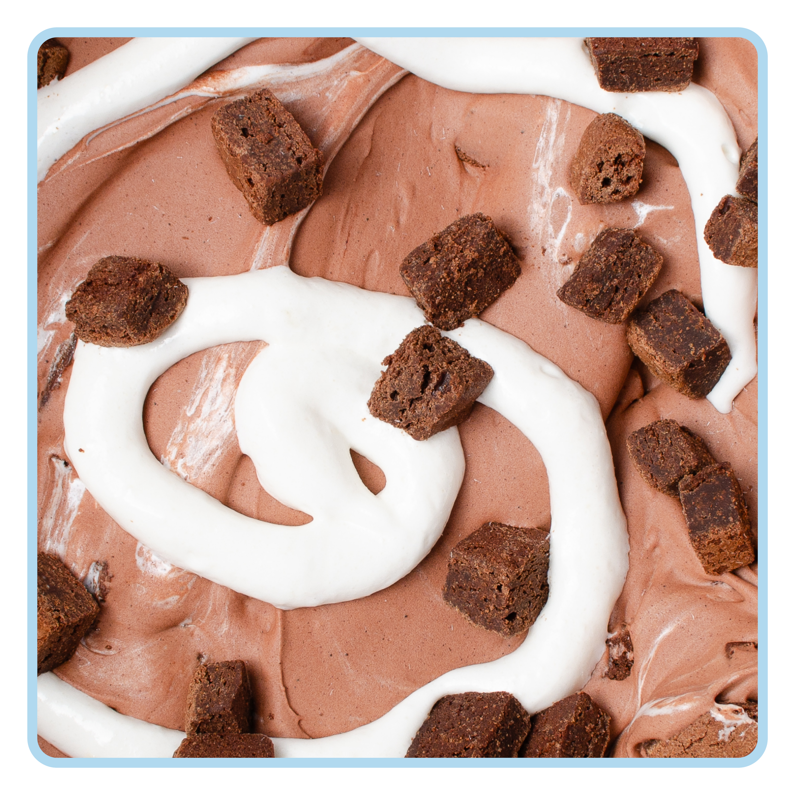 Brownie BlissCoconut brownie batter ice cream with brownie pieces and marshmallow swirls