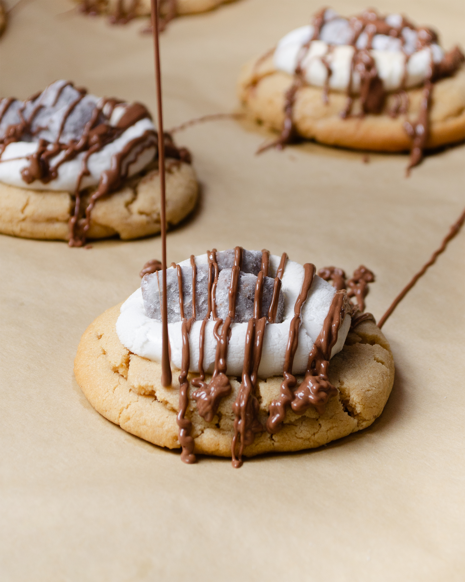 As one of our most popular seasonal flavors of the year, Reindeer Chow has become a December icon at (402) Creamery. But with only a month to enjoy the flavor, we're answering everyone's calls for "More!" with this Reindeer Chow inspired cookie! We guarantee that this recipe for a peanut butter cookie topped with a toasted marshmallow, puppy chow, and chocolate drizzle will be the gateway to many warm memories and maybe even a new holiday dessert staple.